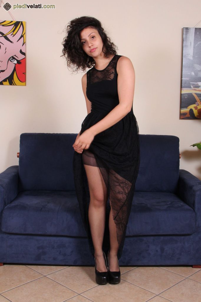 Stunning brunette Tecla shows her feet in black nylonsStunning brunette Tecla shows her feet in black nylons